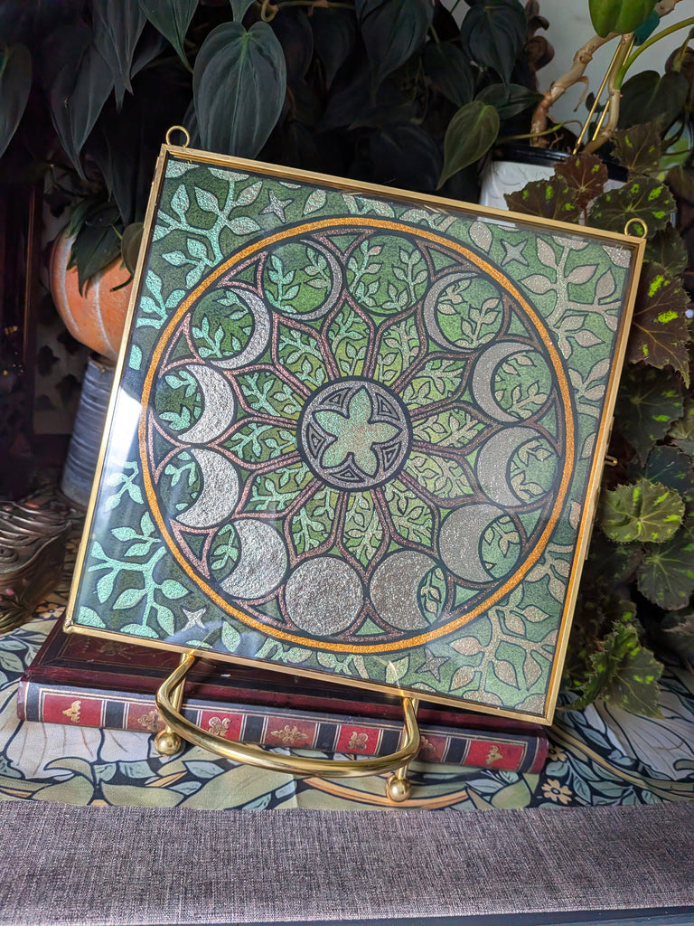 Framed Watercolor Original: Lunar Wheel (Green and Pink)