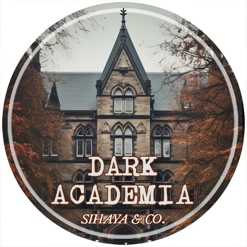 Dark Academia: Golden amber, teakwood, white cedar, leatherbound books, and a touch of caramel.