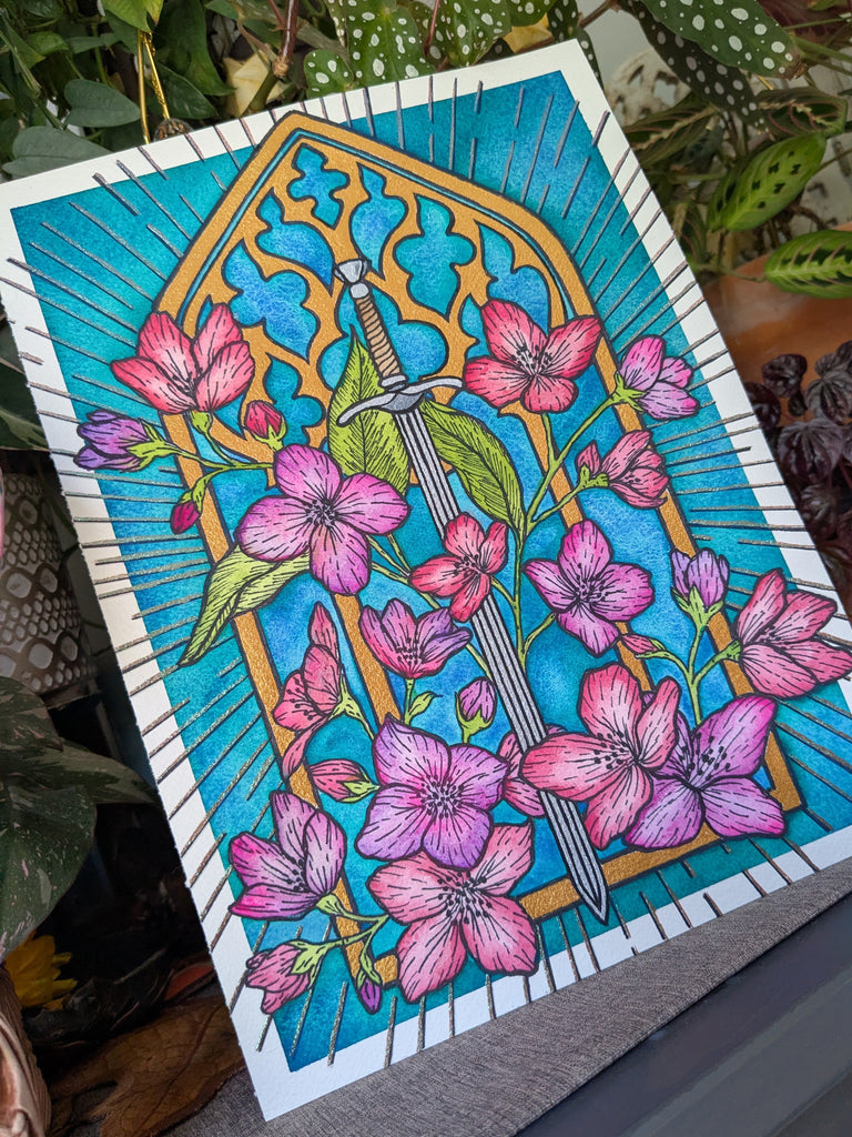 Watercolor Original: Blooming Sword (Fantasy Jasmine)